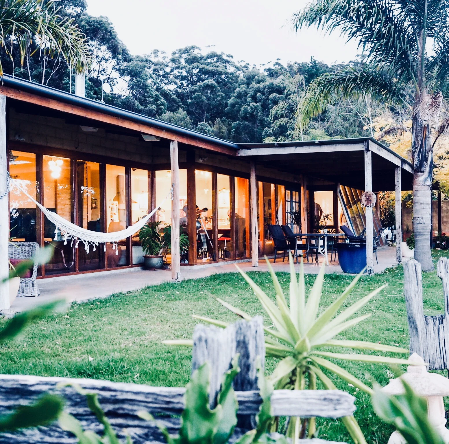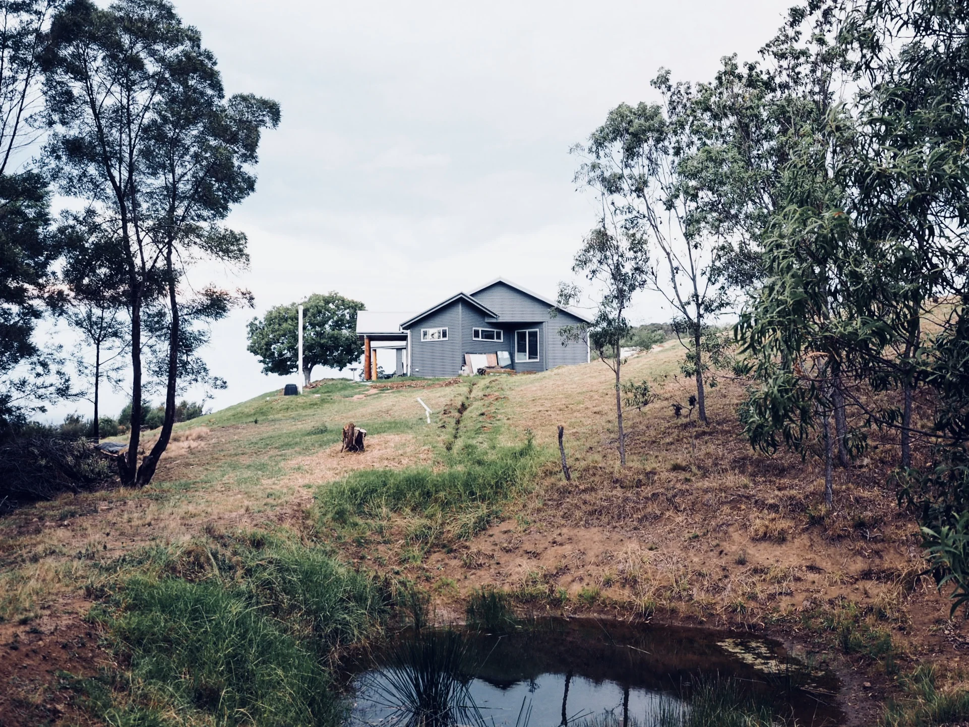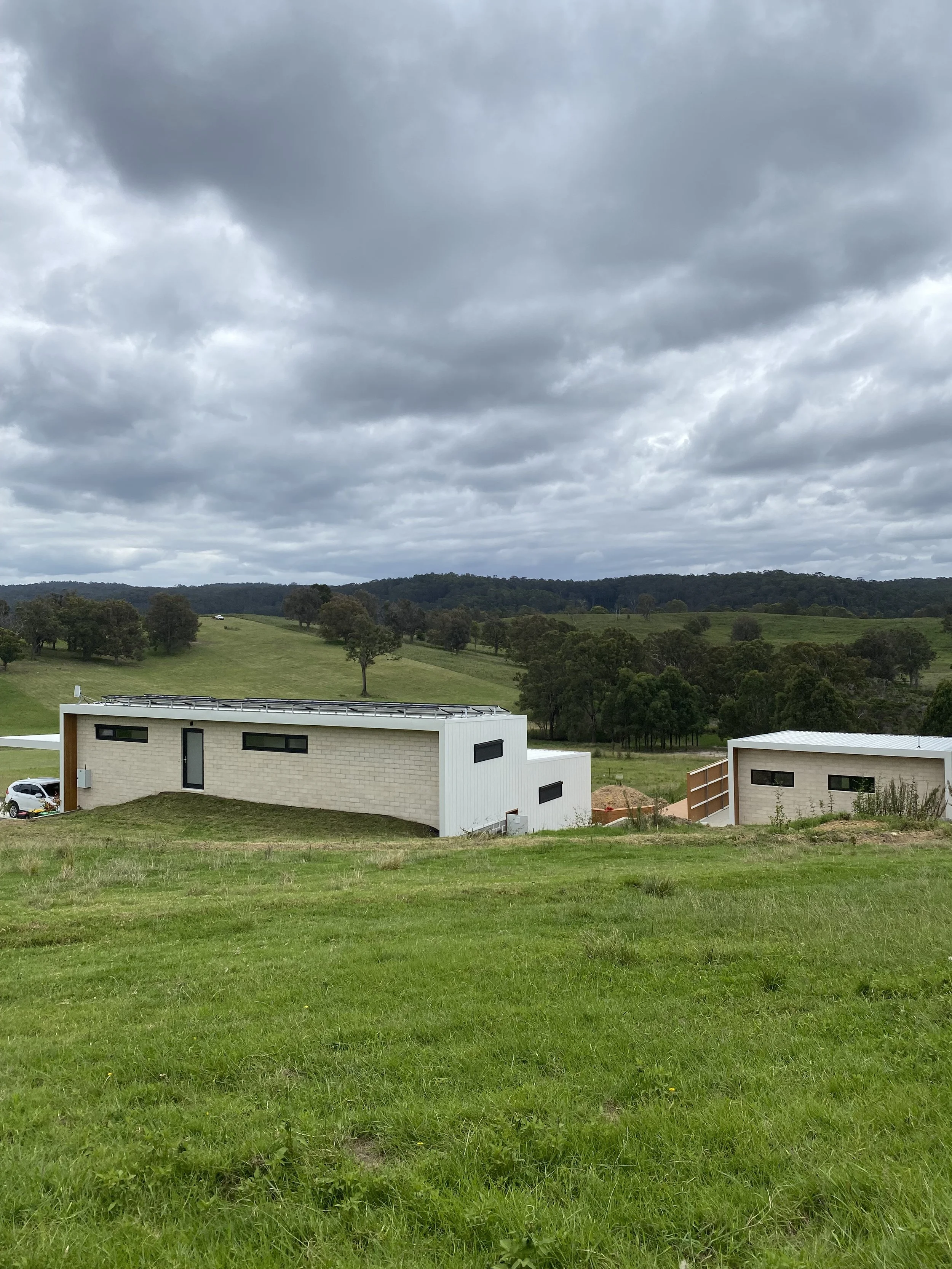 Ecologic homes design and build, design partnership with Tony Otton draftsman. A fusion of earthy and modern, built with reclaimed timber, Environmentally sustainable masonry (Woodstone by Natural brick co) and beautiful locally made iron bark windows. The home has been orientated and designed around the natural arcs of the summer and winter sun. The home and site have been designed, and developed together to create a comfortable, efficient and sustainable space. Trees were planted in strategic positions early on in the construction process providing shade, wind protection, natural cooling units, source of food and fire retardants. We have installed eco friendly rain catchments and grey water systems.