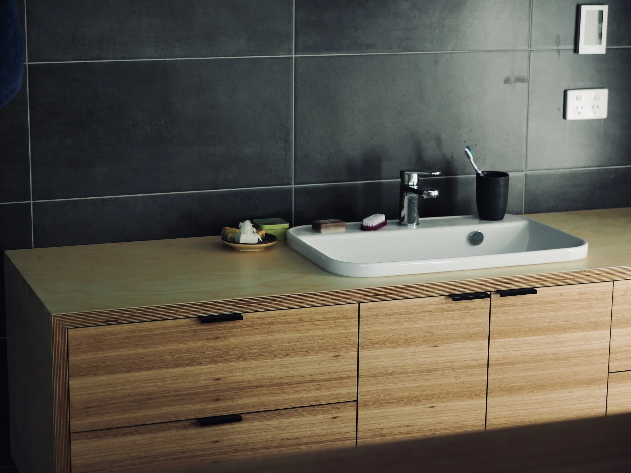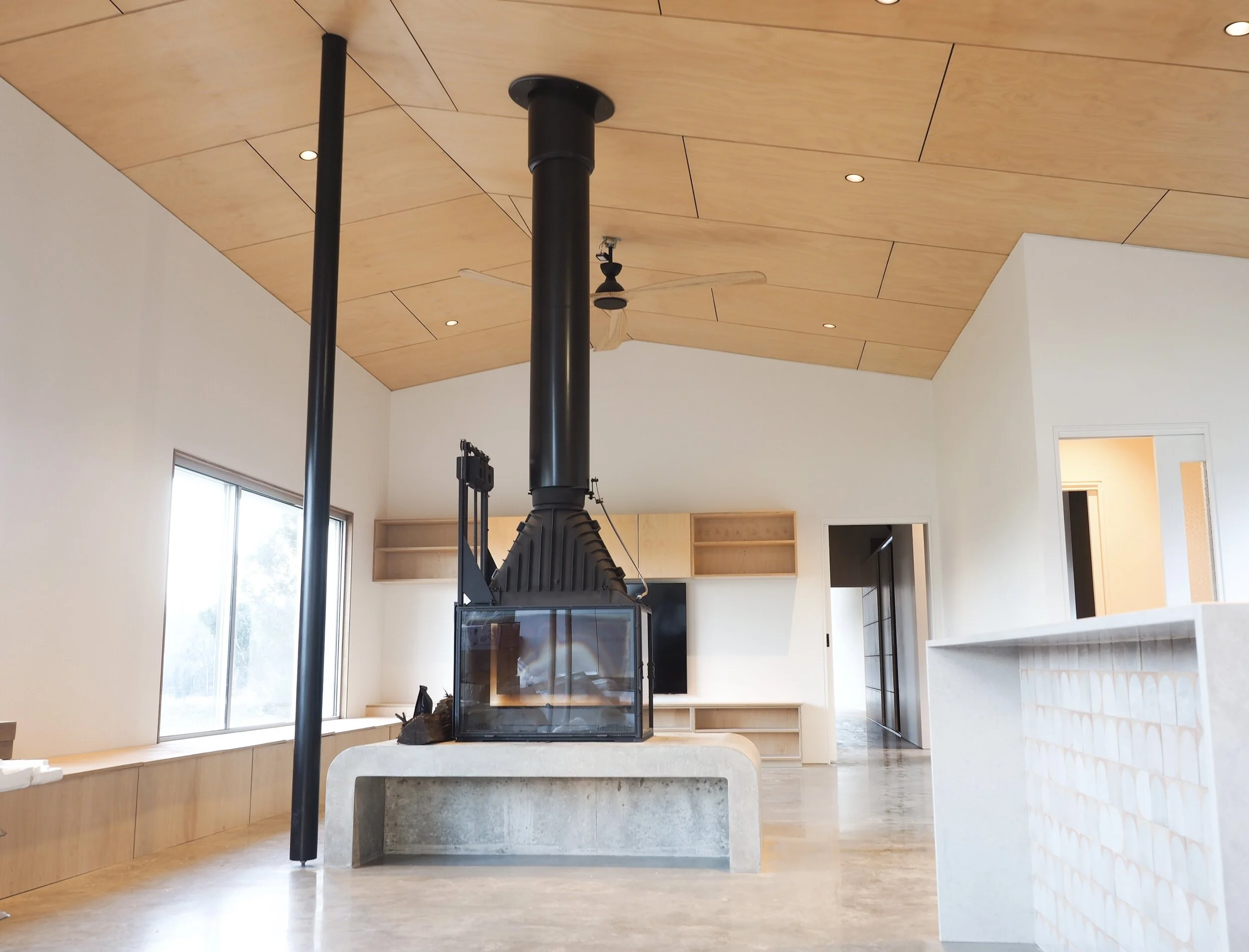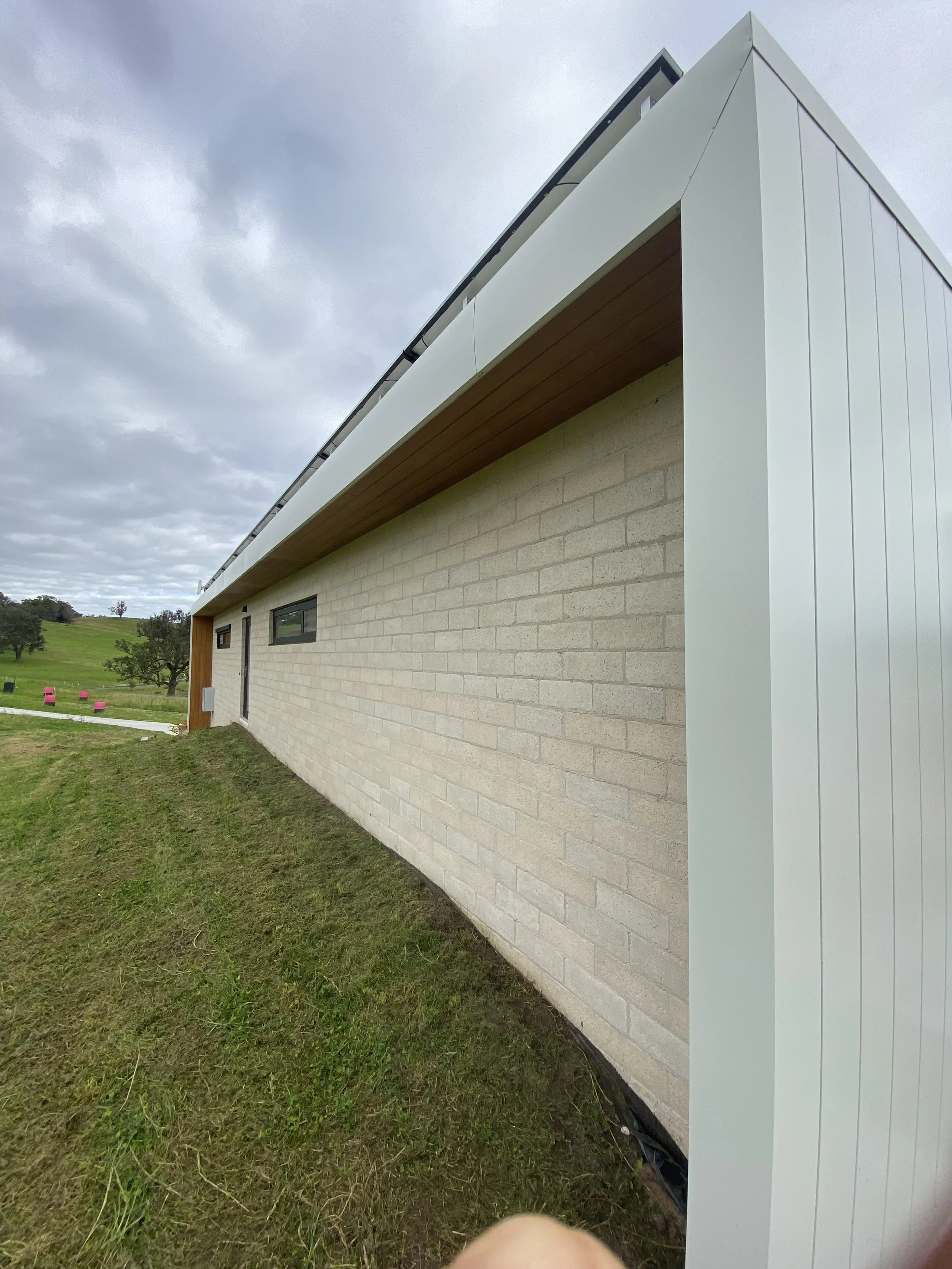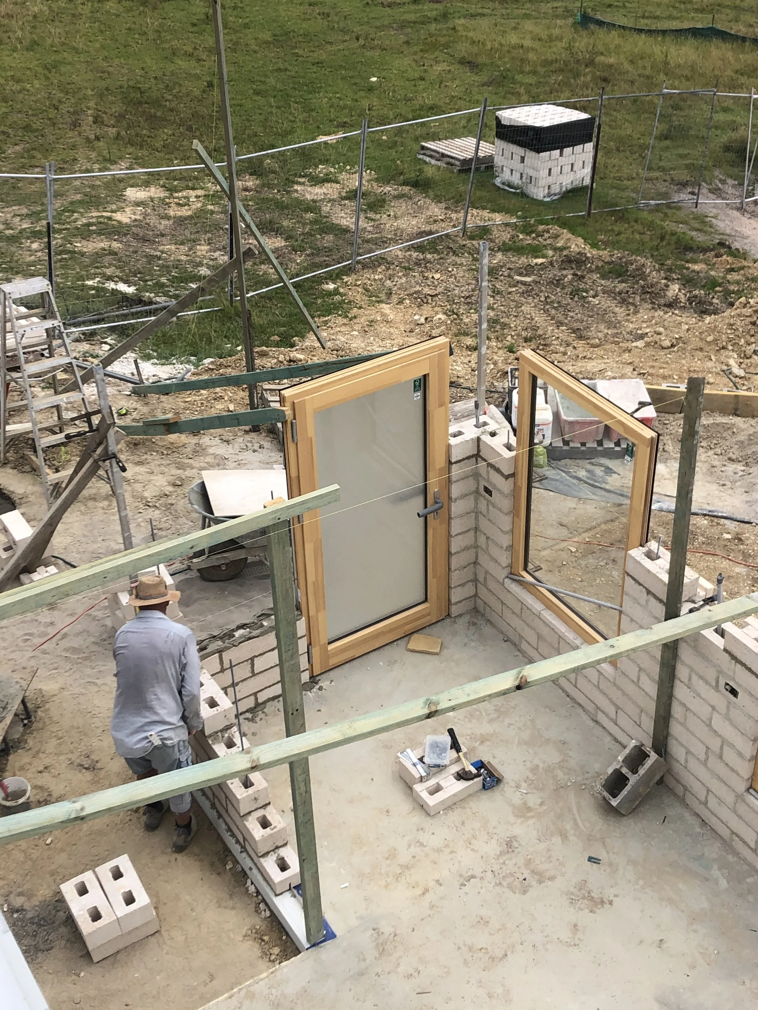 Ecologic homes design and build, design partnership with Tony Otton draftsman. A fusion of earthy and modern, built with reclaimed timber, Environmentally sustainable masonry (Woodstone by Natural brick co) and beautiful locally made iron bark windows. The home has been orientated and designed around the natural arcs of the summer and winter sun. The home and site have been designed, and developed together to create a comfortable, efficient and sustainable space. Trees were planted in strategic positions early on in the construction process providing shade, wind protection, natural cooling units, source of food and fire retardants. We have installed eco friendly rain catchments and grey water systems.